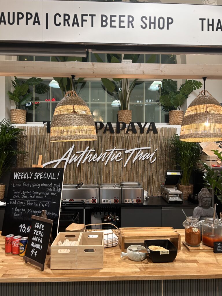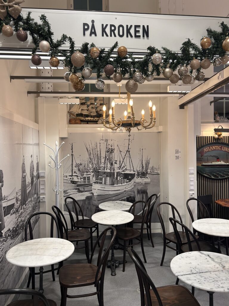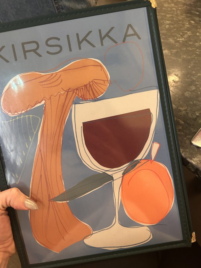 I bought “lusikkaleivät” ,traditional Finnish cookies I love and then headed upstairs to see what treasures awaited me there. Upstairs was a shoppers paradise, where all sorts of goodies can be found; hand made gloves, socks, children’s toys, notebooks, candles, cards, soaps and so on. I bought led lights for home and the best smelling soap I had ever come across. After treating myself, I went to take photos of a relatively new restaurant named, “Kirsikka” (cherry in Finnish). The waitress said the name stemmed from the restaurant being “the cherry at the top of the Hakaniemi Market Hall.”
